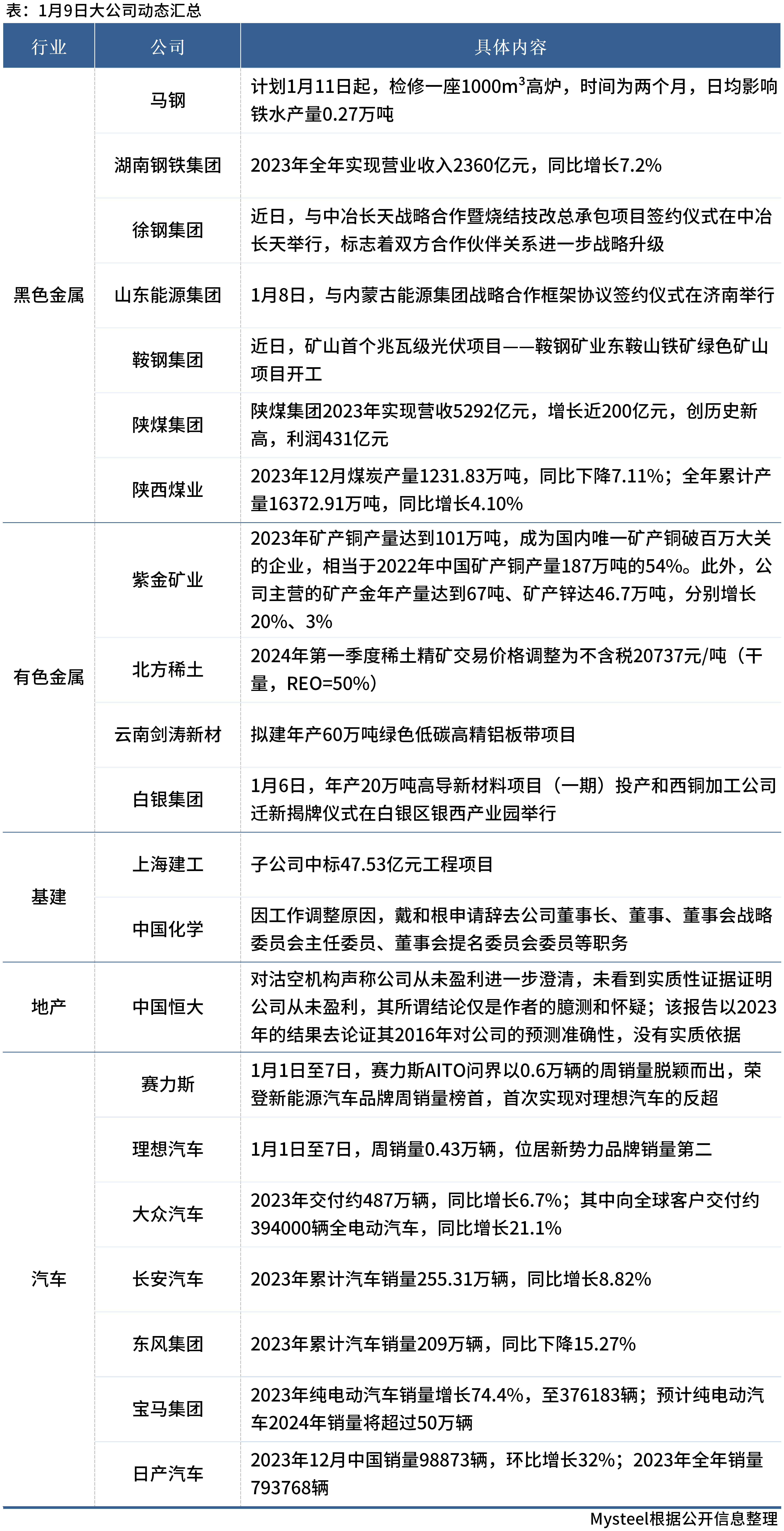 1月10日,Mysteel匯總部分大宗商品相關(guān)企業(yè)動(dòng)態(tài)。